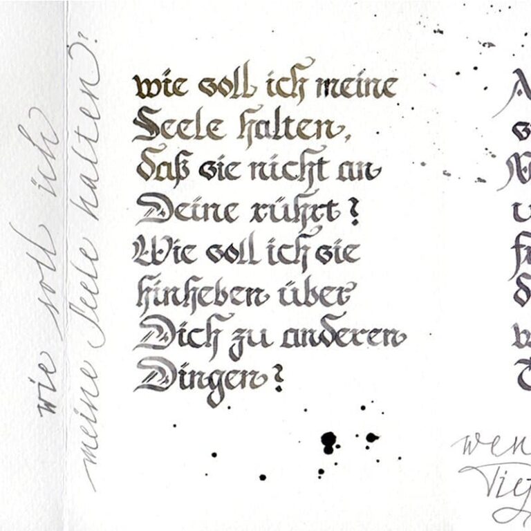 Ich bin Carina Alexandra Richter, Kalligraphin und Autorin. Aus meiner Liebe zu Schrift, Sprache, Farbe und Form entstehen handgeschriebene Werke mit Gefühl. Mit Liebe zum Detail gestalte ich individuelle Geschichten, die man in der Hand halten kann und Freude in den Alltag bringen.